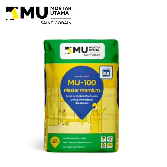 Mortar MU-100 plester instan yang banyak digunakan untuk proyek rumah tinggal.