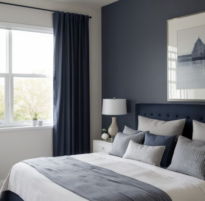 Perpaduan biru navy dan abu-abu menciptakan nuansa tenang sekaligus mewah. Kombinasi ini sangat ideal untuk kamar tidur, menghadirkan suasana yang relaks dan elegan. Dengan menggunakan cat kamar abu-abu kombinasi biru navy, Sahabat Mitra10 bisa mendapatkan tampilan ruang yang modern dan menenangkan, cocok untuk istirahat yang maksimal.