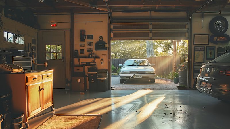 10. Garasi Mobil Samping Rumah dengan Tambahan Ruang Hobi