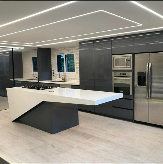 Plafon dengan lapisan kilat atau glossy menambah elemen modern futuristik ke dalam desain interior. Plafon ini cocok digunakan di dapur atau ruang makan yang ingin tampil bersih dan elegan.