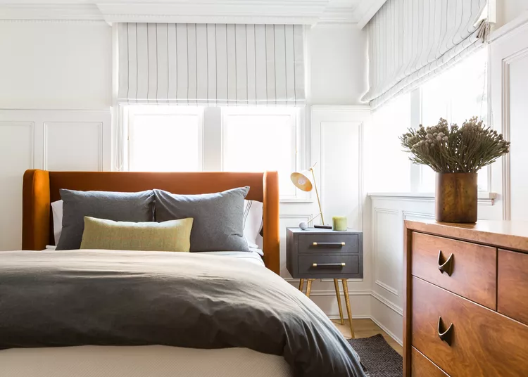 Konsistensi dalam kesederhanaan dari kamar tidur loteng ini dengan palet netral yang minimalis dan sentuhan simetri, dari atap langit-langit hingga lampu dinding di sisi jendela ganda di atas tempat tidur. Ide desain kamar tidur minimalis ini bisa menjadi pilihan unik untuk kamar kamu loh.