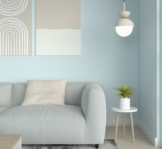 Tingkatkan mood dengan warna biru muda yang memberikan kesan segar dan menenangkan, cocok untuk kamar tidur atau ruang kerja.